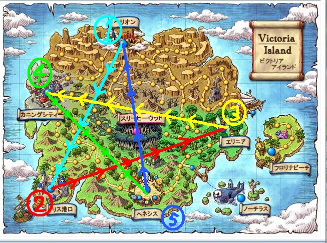 各クイズの答えの最後の文字を、ビクトリアマップの地形を考慮した星の描き方にて並べる必要がある。