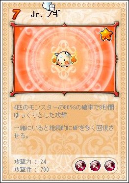 実用的でかつファミリアのドロップが高めなモンスターに、jr.ブギを挙げておく。