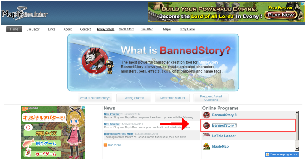Online Programsの中の『Bannedstory4』をクリック。