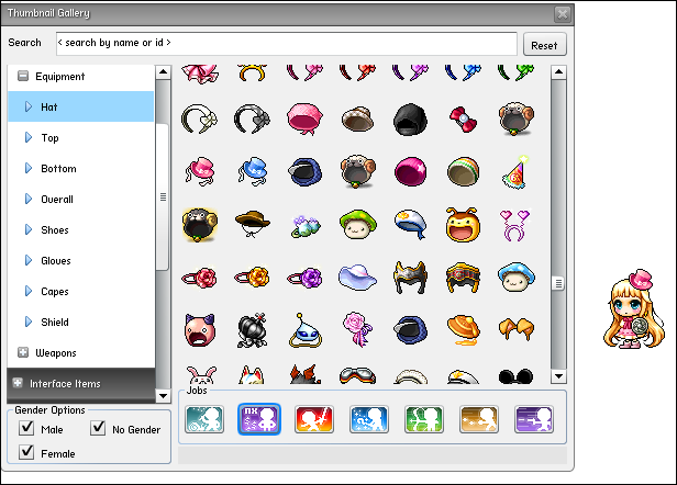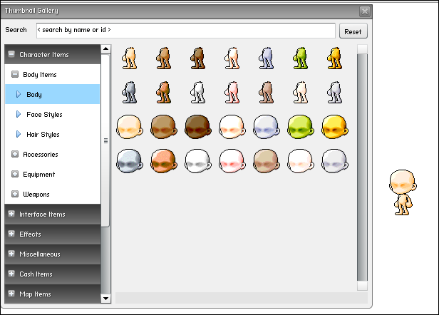 出てきたウインドウの一番上にある『Charactar Items』をクリックすると、
