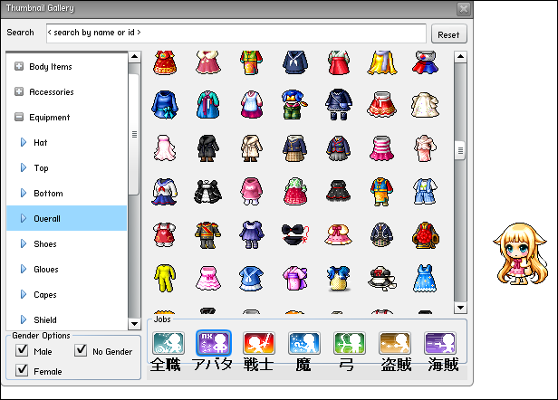 装備をつける時、職業別に分類されております。