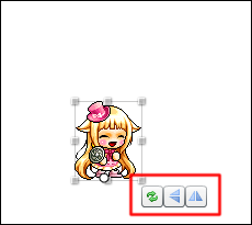 キャラクターをクリックすると、拡大縮小や回転させる事ができます。