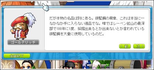 今回も緋堅鋼という鉱石が誕生したらしく、その鉱石で作った肩の装備がレアなんだぜ!という話。