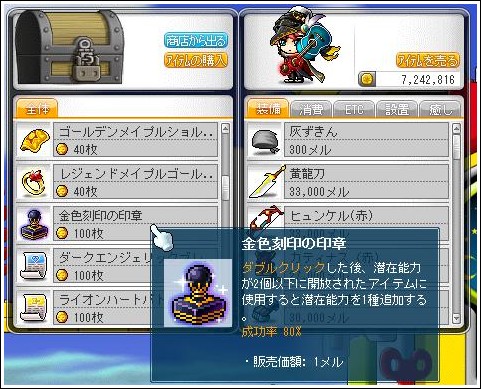 チケットの切れ端は旧メイプル環境のモンスターレベルに対応したドロップになっているので、